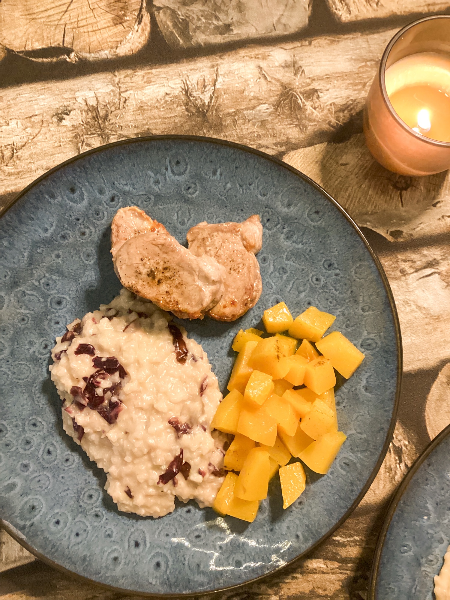 Ist der Reis fertig Saft einer Orange, den Gorgonzola, Radicchio sowie 40g geriebenen Parmesan zugeben. kurz unterheben mit Salz und Pfeffer abschmecken.