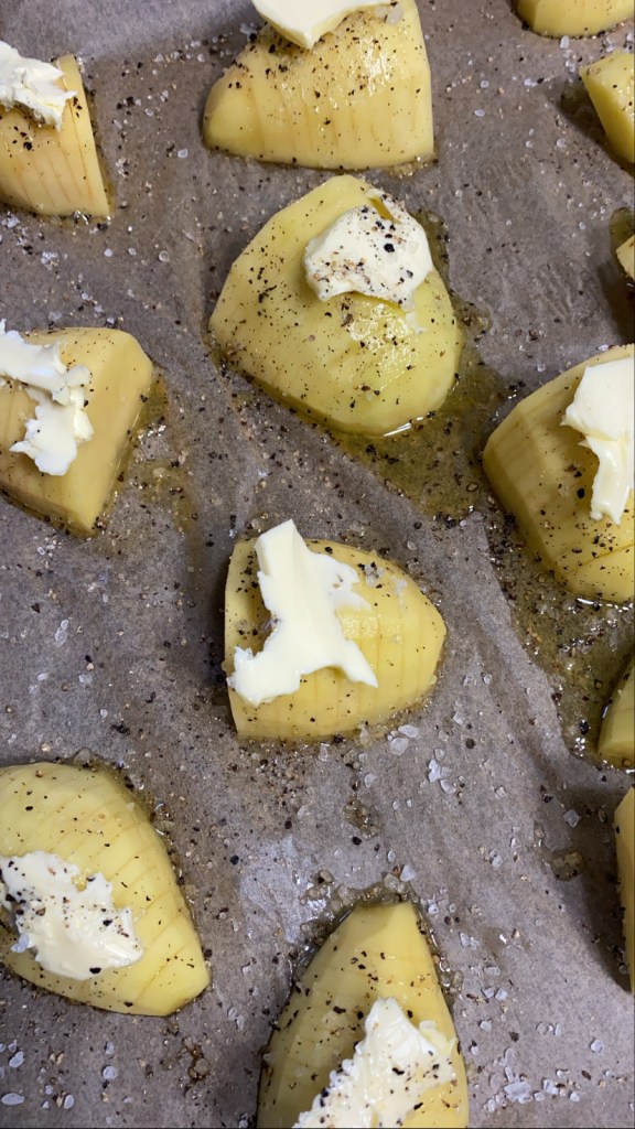 Am besten beginnt Ihr mit den Fächerkartoffeln.