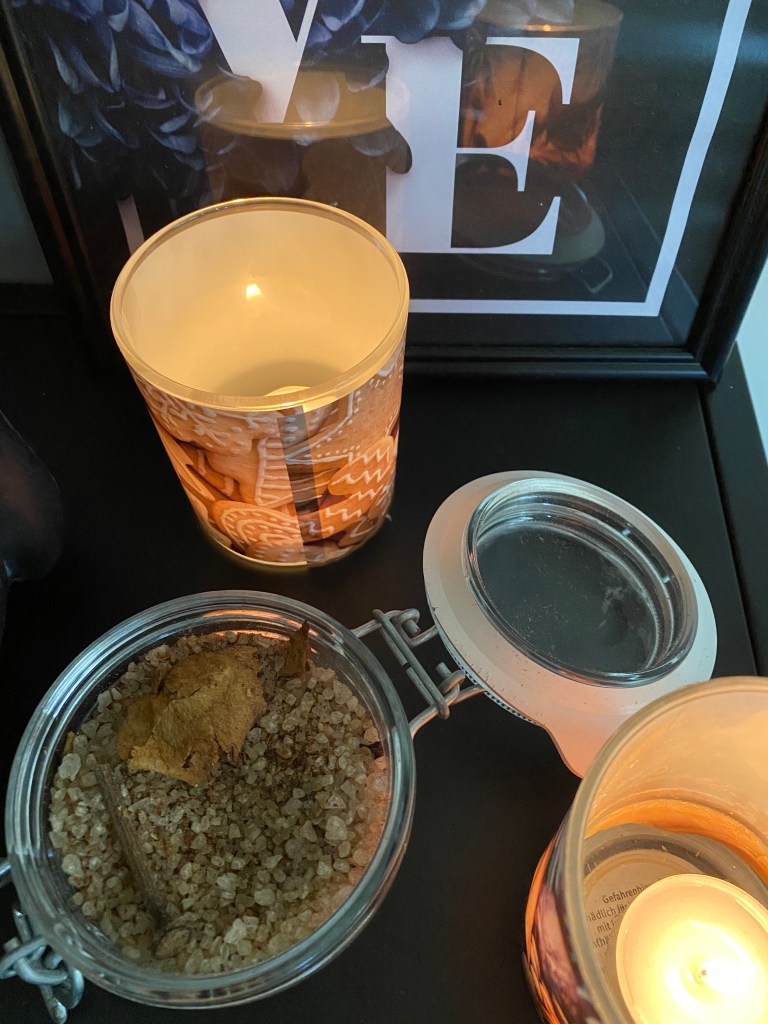Ich ließ das Wasser in der Wanne laufen, während ich alles für mein Entgiftungsbad vorbereitet habe.