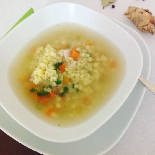 Kocht diese Hühnersuppe mit Nudeln am Wochenende vor und freut euch auf eine warme Suppe am Montagabend.