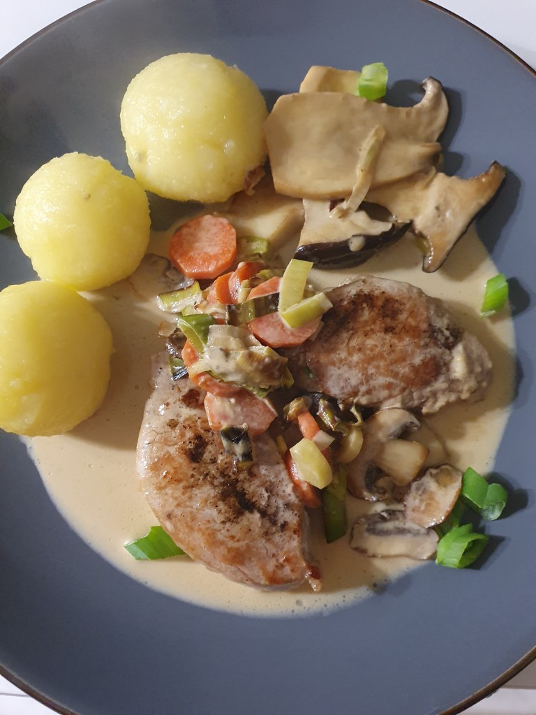 Schweinefilet mit chinesischem Gemüse Schweinemedaillons in Rahm