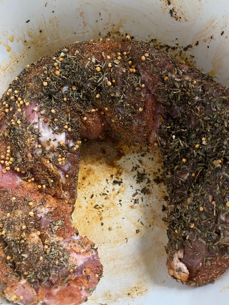 - Make Spice Rub – Ich habe mit der Kombination von Gewürzen und Kräutern herumgespielt, um dieses Schweinefleisch zu würzen, und bin auf der Mischung unten gelandet, aber ihr könnt die Gewürze nach eurem Geschmack verändern.