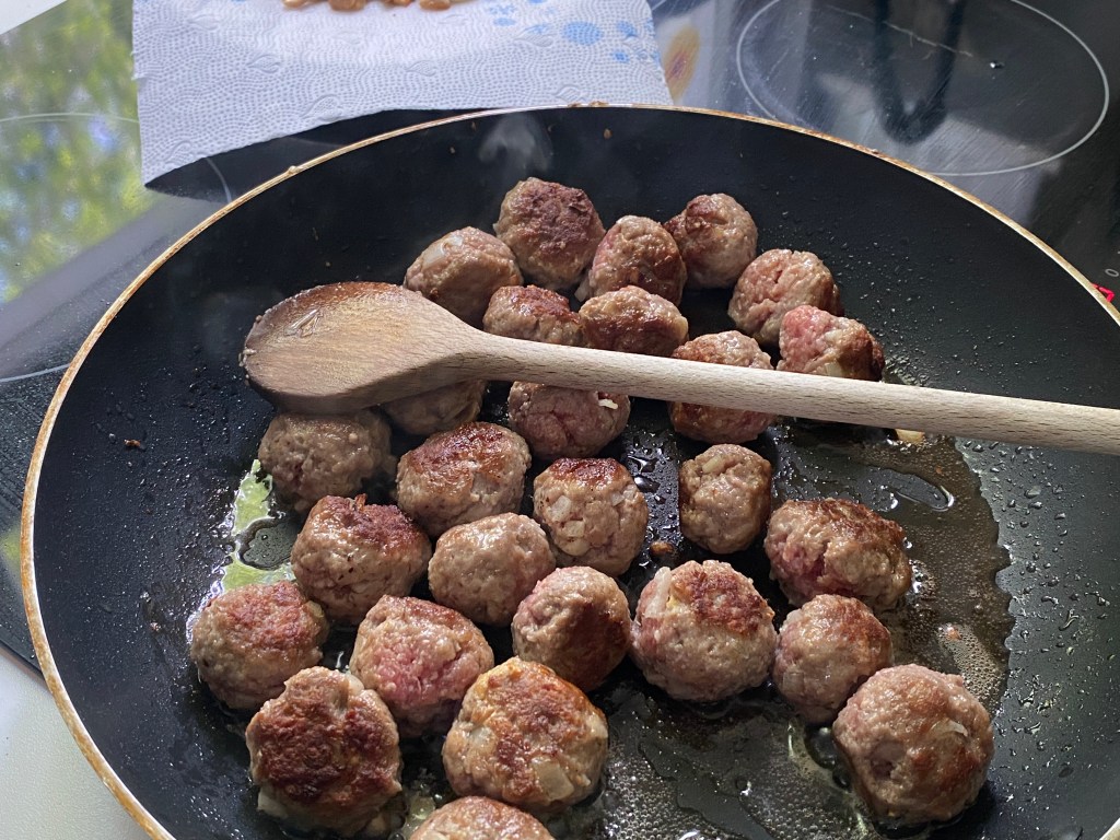 Wenn ihr die Fleischbällchen verwenden möchtet, legt sie in den Kühlschrank, um sie über Nacht aufzutauen, und folgt dann weiterhin dem Rezept, beginnend mit Schritt 7.