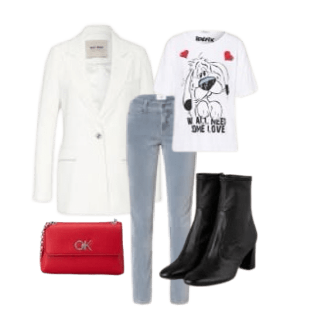 Blazer Boss, Jeans Gambio, Stiefeletten Michael Kors, Shirt, Max Mara, Kette OFF-White,