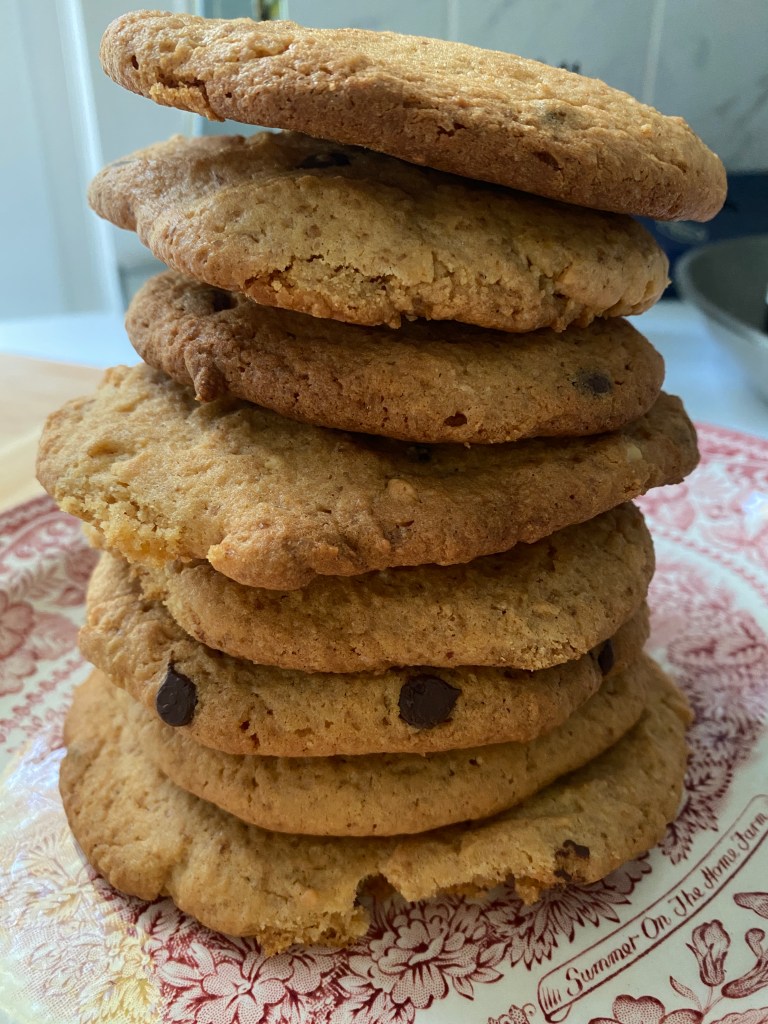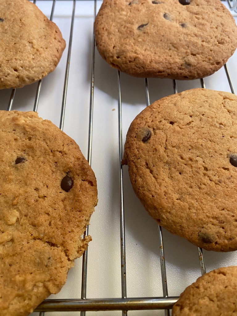 - Halbsüße Schokoladenchips / -stücke – Als ich diese Kekse zum ersten Mal gemacht habe, habe ich Chips verwendet. Man kann aber auch Stückchen zugeben.