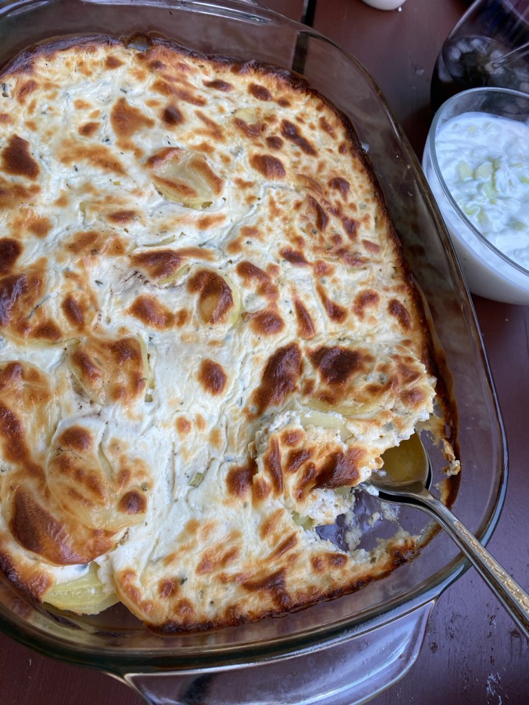 Das Zaziki schmeckt wie beim Lieblingsgriechen. Die Spieße sind sogar besser als beim Griechen und der Auflauf ist wunderbar cremig.