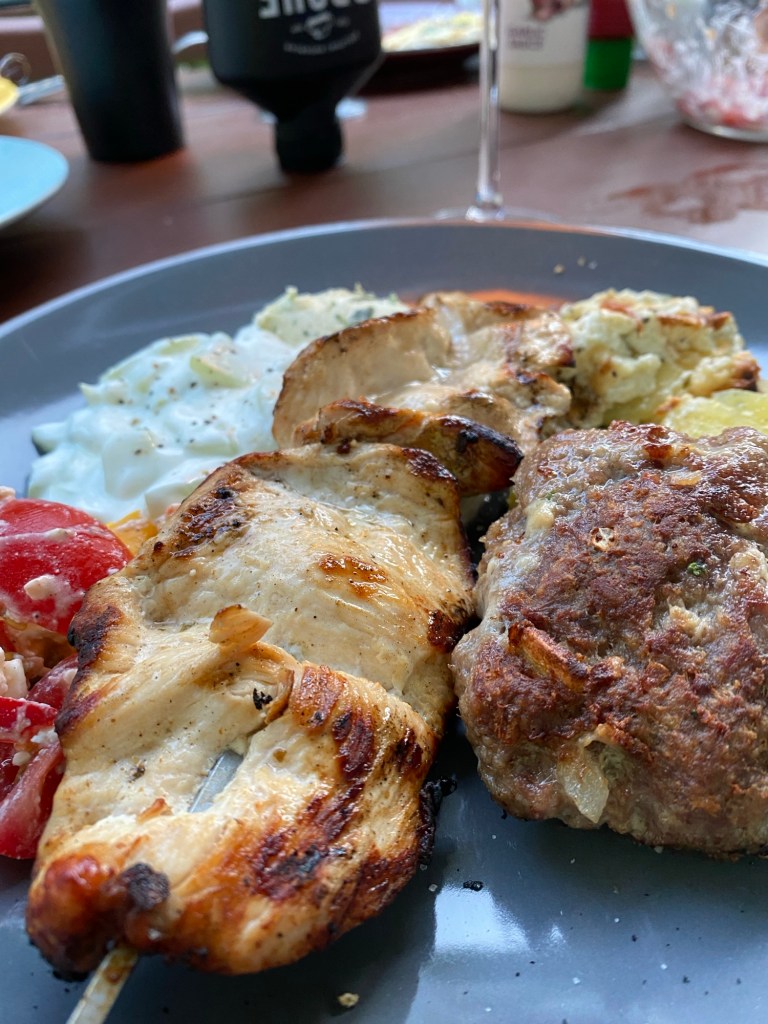Für mein griechisches Menü heute, habe ich mich daher für Souvlaki, Bifteki, Zaziki und Kartoffeln nach kretischer Art entschieden.