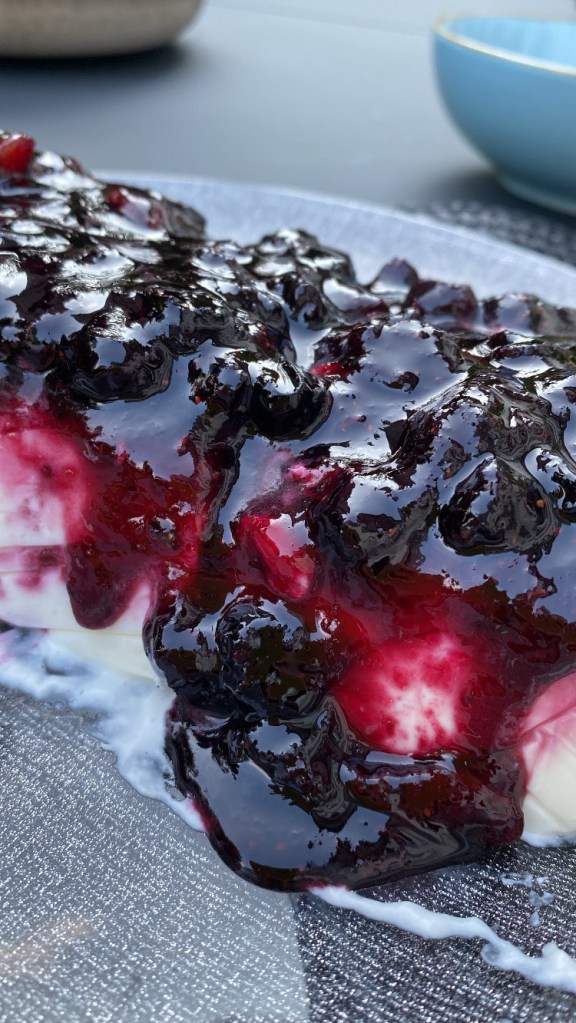 Sahne mit Vanillezucker Steiff schlagen. Alle anderen Zutaten verrühren, Sahne unterheben und alles auf dem Blaubeerspiegel verteilen. Mindestens 5 Stunden durchkühlen. 15 Minuten vor dem Verzehr aus dem TK nehmen.