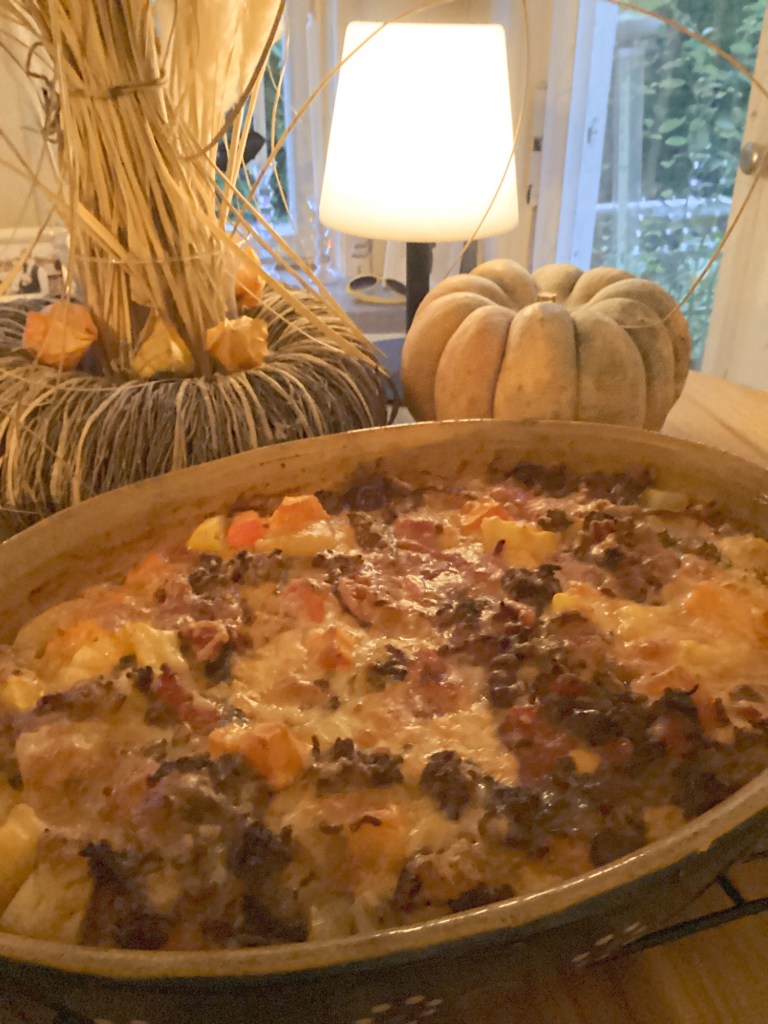 Herbstauflauf mit Kürbis-Kartoffeln und Waldpilzen