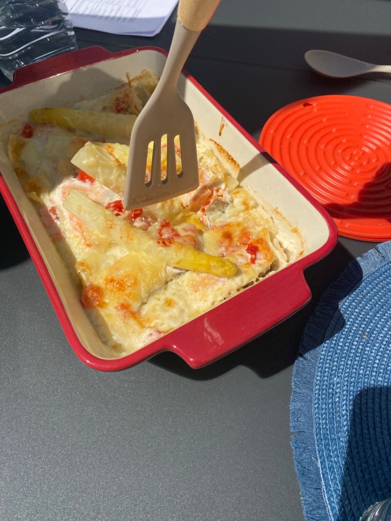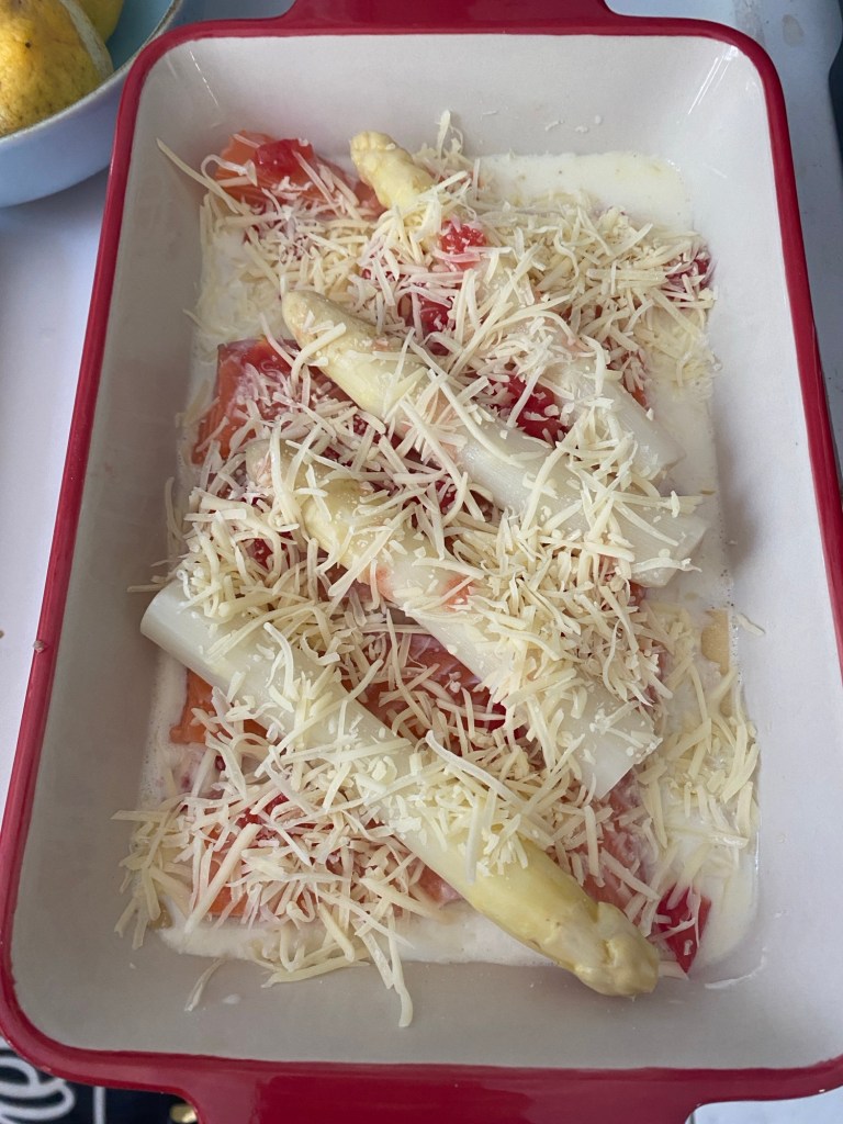 Italienische Pasta mal anders. Das königliche Frühlingsgemüse runden mit einer leckeren Spargelsoße und Tomaten den Auflauf ab